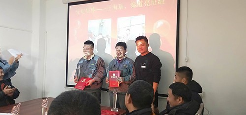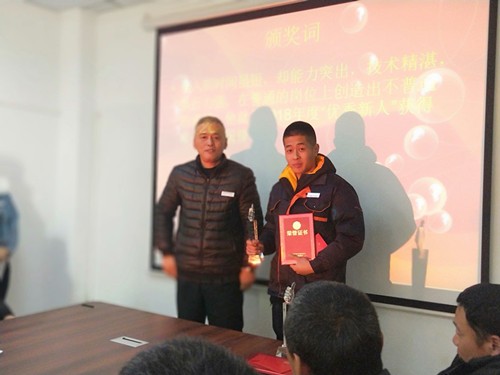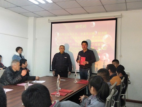 Wang Dehua,assistant to the general manager and director of the office, read the awards andthe company leaders presented awards to the people who received the award. Mr.Xu awarded the "Advanced Individual, Advanced Collective" award;General Wei awarded the "Excellent Staff, Technology Innovation Star"Award; Hu Zong awarded the "Technical Experts, Service Star" Award;Liu Zong awarded "Excellent Newcomers" Awards.
