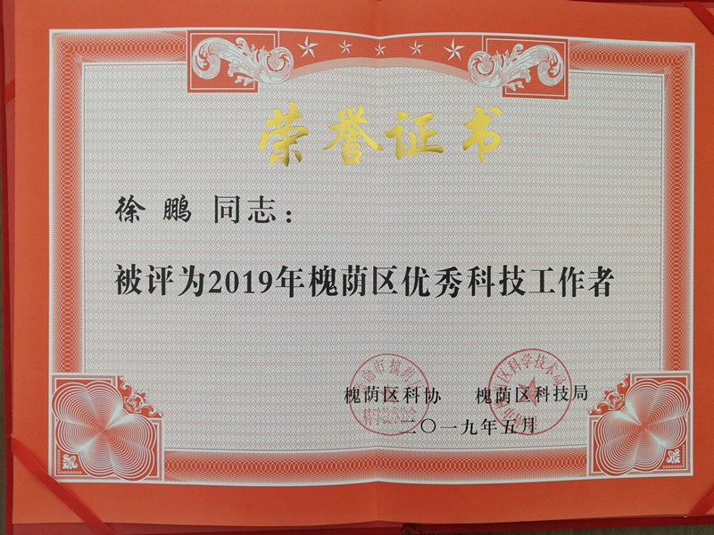 喜訊!!!徐鵬總經理榮獲濟南市槐蔭區優秀科技工作者稱號
