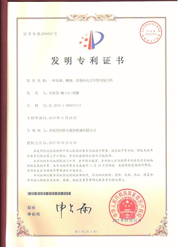近年來,公司在徐鵬總經理的帶領下,迎難而上、攻堅克難,突破了多項科技難關,例如,主要應用于鋼結構、鐵塔加工、工程機械和汽車、船舶制造領域的專機設備——YJCX系列數控槽鋼角鋼帶鋼沖孔剪切生產線集兩個發明專利于一身,以其加工質量好、生產效率高,最大化的節約了勞動力和加工不同型材等優越特性,贏得了客戶的廣泛關注。該設備將孔、打字、剪切高度集合于一體,不僅在槽鋼、角鋼的縱向實現數控來保證沖孔的間距,而且在槽鋼的三面和角鋼的兩翼也采用了數控,這樣就實現了槽鋼三面和角鋼兩翼的多準距沖孔。縮短了輔助工作時間,提高了工作效率。
