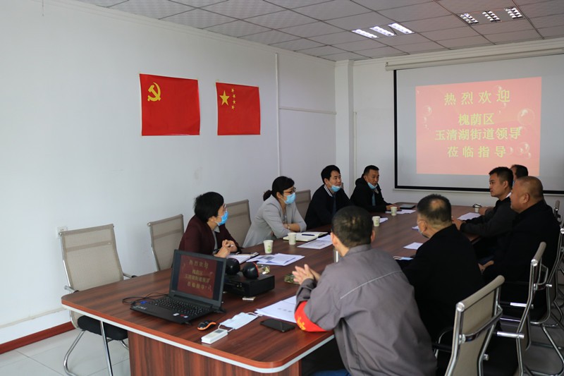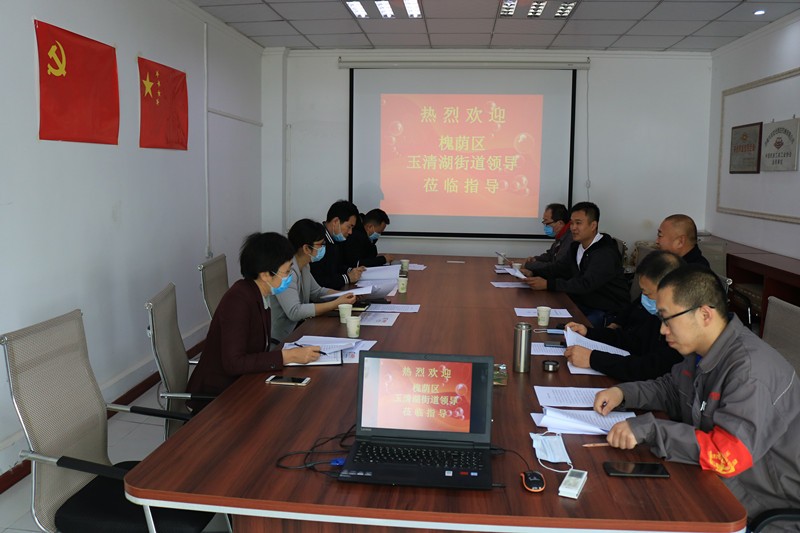 59日上午,槐蔭區玉清湖街道黨工委書記逯明一行蒞臨公司,考察指導公司常態化疫情防控和復工復產工作,并召開座談會,深入了解企業發展過程中遇到的困難,直面問題、現場辦公。玉清湖街道應急管理辦公室副主任陳國瑞、黨建工作辦公室副主任李偉偉、區自然資源局玉清湖國土所所長張超陪同。公司董事長徐福厚、副董事長魏士山、總經理徐鵬、黨支部書記兼生產副總孔祥健、董事會秘書兼辦公室主任王德華熱情接待了逯明書記一行。